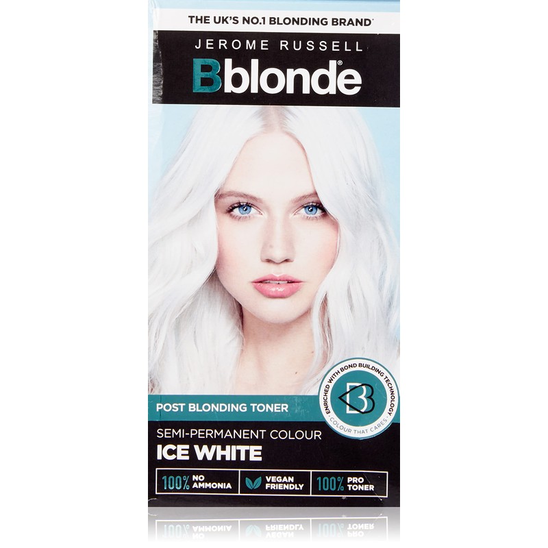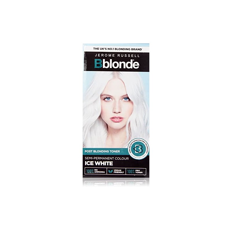 Jerome Russell Bblonde Ice White Post Blonding Toner - Semi Permanent Hair Dye Kit for Pre Lightened & Blonde Hair with Brazil Nut Oil, No Ammonia & Vegan