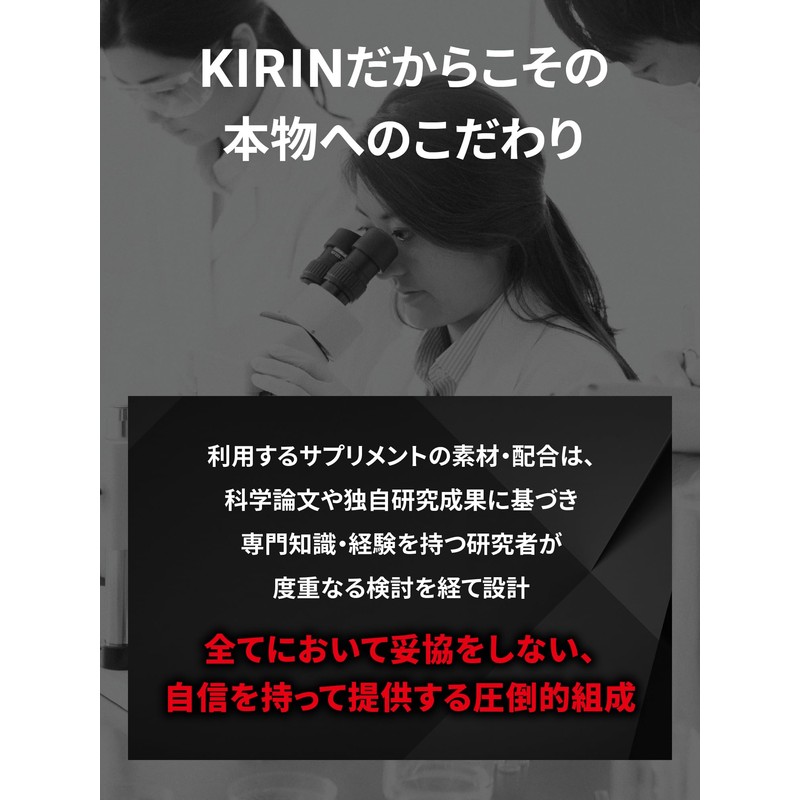 - 【キリンホールディングス開発・国内GMP認証会社製造】キリンホールディングス開発チームにより開発され、国内のGMP認証を取得した信頼できる製造会社によって製造されています。安全性と品質に配慮し、厳格な基準を満たしています。