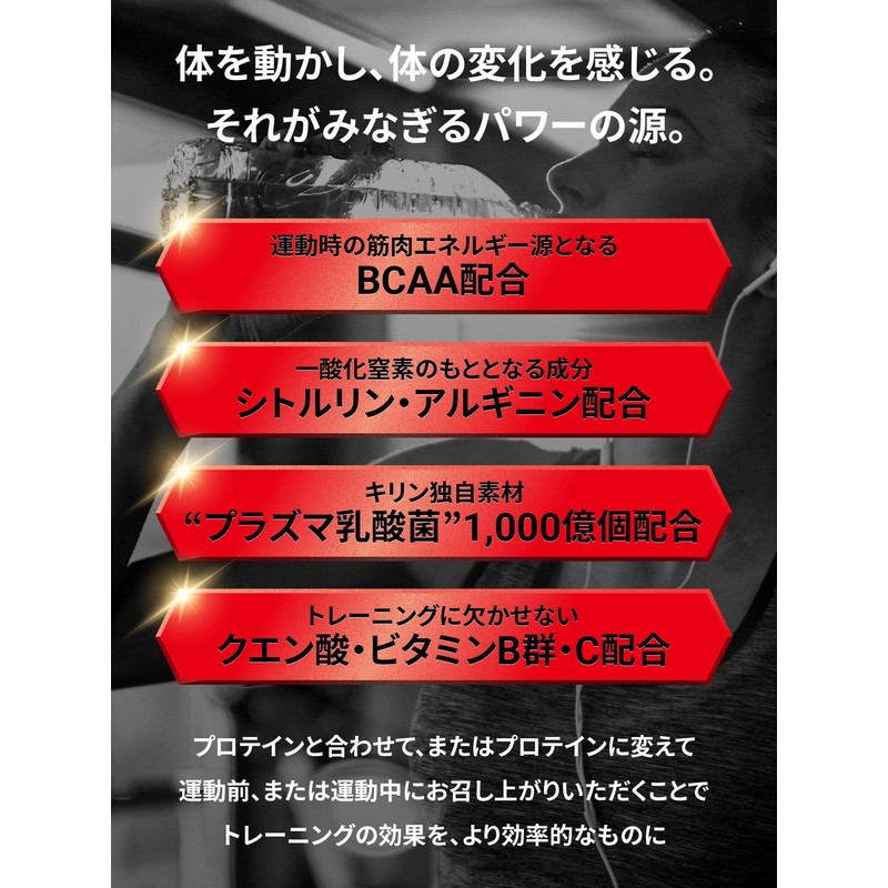 - 【内容成分】ロイシン、バリン、イソロイシン、シトルリン、アルギニン、クエン酸、プラズマ乳酸菌