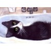 BCB Tuxedo Cat Cool in the Sink Print of Painting ACEO 2 1/2 x 3 1/2 Inches
