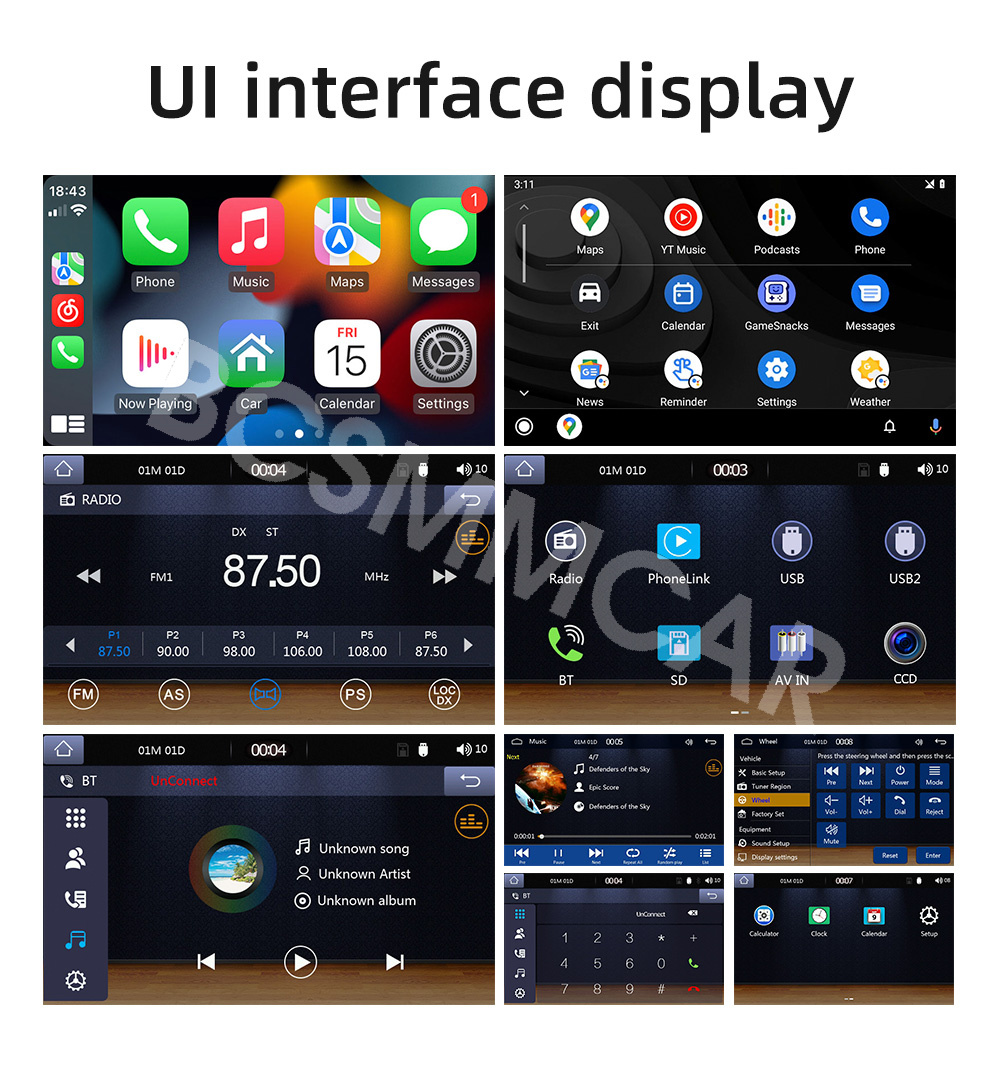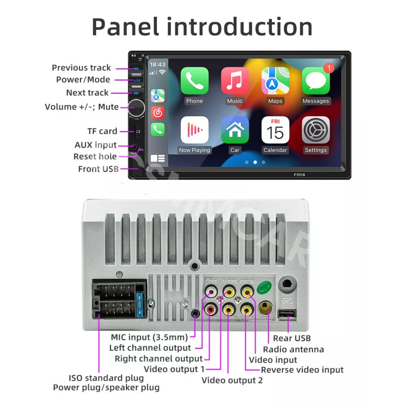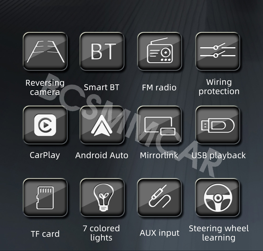 - Support 1: MP5 Player,Bluetooth,Touch Screen,Radio,Carplay
