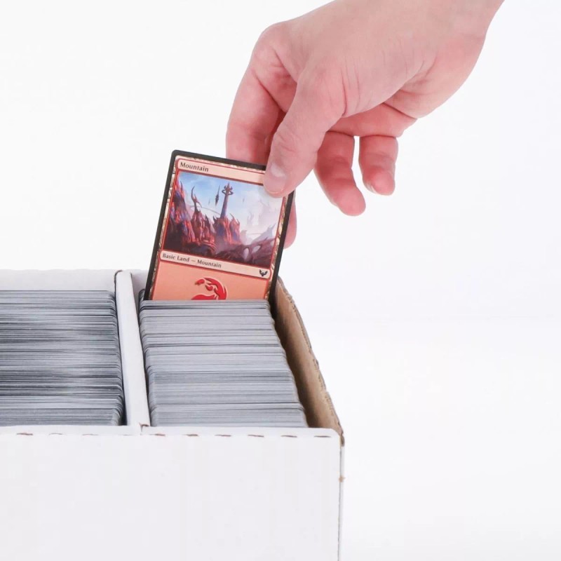 The BCW 3200 Count Storage Box (Full Lid) offers durability, ample space, and superior protection. With a capacity of up to 3200 standard-sized trading cards or 4800 collectible gaming cards, this box provides generous storage without compromising on quality. Its full lid design ensures complete protection against dust, moisture, and other environmental factors, preserving the integrity of your cards for years to come. Our Trading Card Dividers work great to help you keep your collection organized in these boxes. Also use Slip Guard Strips to keep your cards securely in place.
