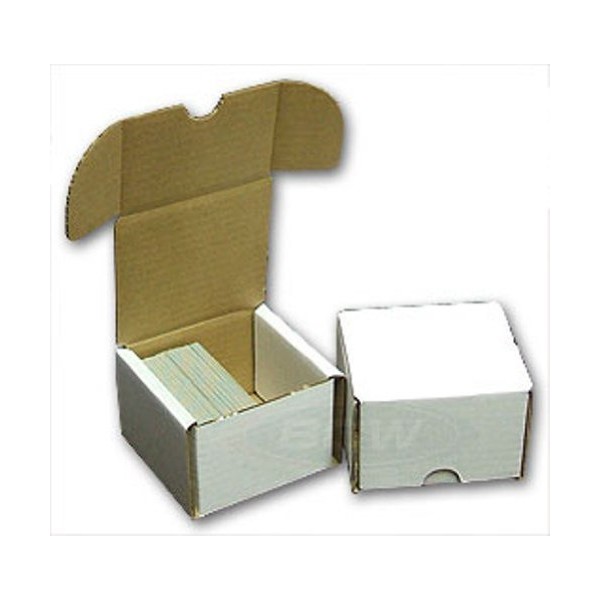 Cardboard Bx-200 Count (50) BCW Direct 200 Count Storage Box The BCW Storage Box is the highest quality, most competitively priced cardboard storage box on the market today. They are constructed of white corrugated paper and have a 200 lb. test strength. Use this box for store and protect collectible trading cards like: baseball cards,basketball cards, football cards, Magic The Gathering, VS, Yu-Gi-Oh, Pokemon, Dragonball Z and others.- Holds 200 standard sized trading cards- Brilliant white- High quality Dimensions- Exterior 3 1/2 x 3 3/4 x 2 3/4- Interior3 3/8 x 3 5/8 x 3 5/8 The archival-quality, acid-free material safeguards cards from degradation over time. The compact, stackable design saves space and keeps your collection neat. Each box comes with a label insert for easy customization and identification. Trust in the BCW brand for reliable storage solutions designed for avid collectors. With easy assembly and quick setup, these storage boxes make organization hassle-free.