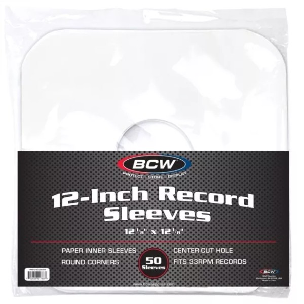 BCW Vinyl Record Paper  Inner Sleeves with Rounded Corners, White, Pack of 50