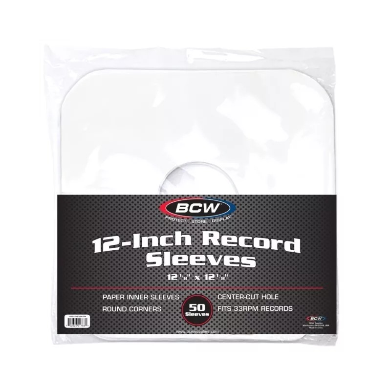 12" Paper Record Inner Sleeves with Rounded Corners, White, 50 Count,  BCW