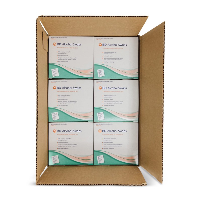 BD alcohol swabs contain 70% isopropyl alcohol for use as an antiseptic for preparation of the skin prior to injection. Each wipe is individually-wrapped and sterilized in a 4-layer foil wrapper with an airtight seal. The bulk pack contains 12 boxes of 100 wipes for use in home, medical, and healthcare settings. BD is one of the largest global medical technology companies in the world and is advancing the world of health by improving medical discovery, diagnostics, and the delivery of care.
