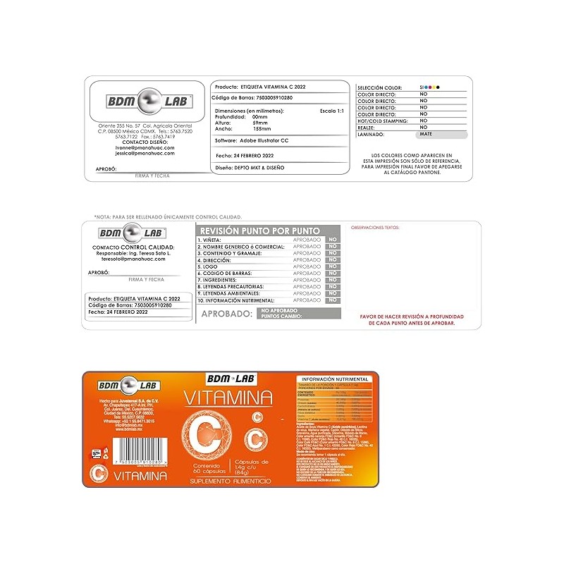 BDM LAB | Vitamina C | Suplemento Alimenticio | 3 x 2 | 60 cápsulas c/u