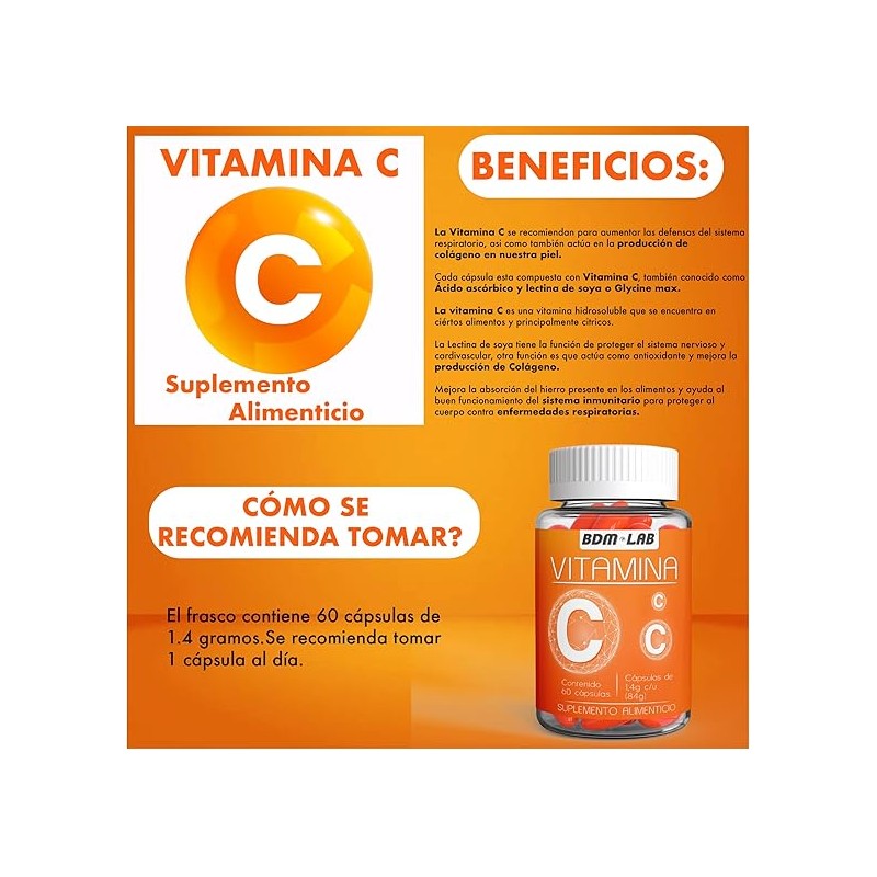 Las cápsulas de Vitamina C BDM se recomiendan para aumentar las defensas del sistema respiratorio, así como también actúa en la producción de colágeno en nuestra piel.