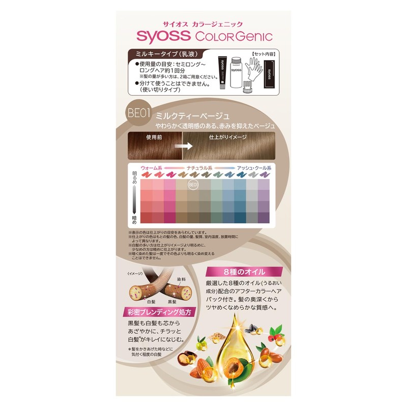 サイオス カラージェニック ミルキーヘアカラー BE01 ミルクティーベージュ(チラッと白髪用 おうちで手に入るサロン品質)[医薬部外品]