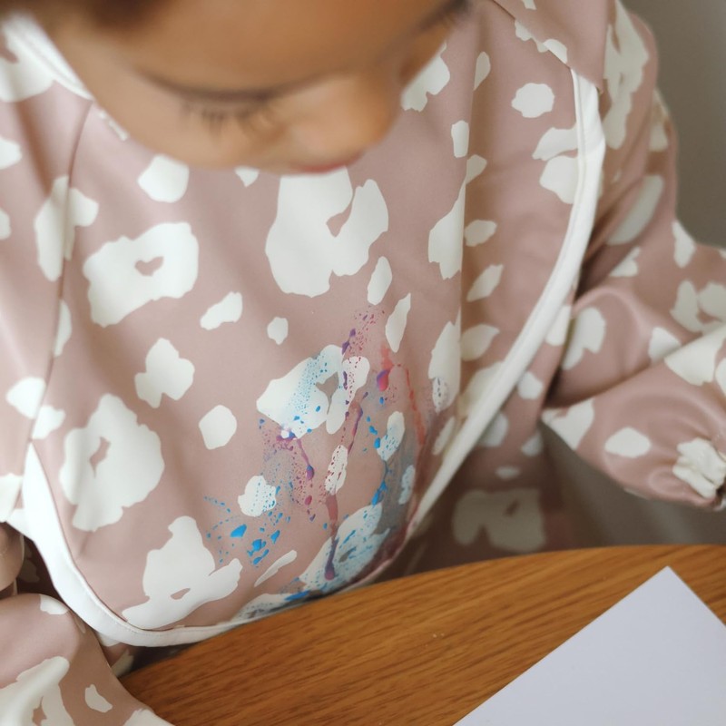 - Bib with integrated sleeves: effectively protects clothes, perfect for creative activities