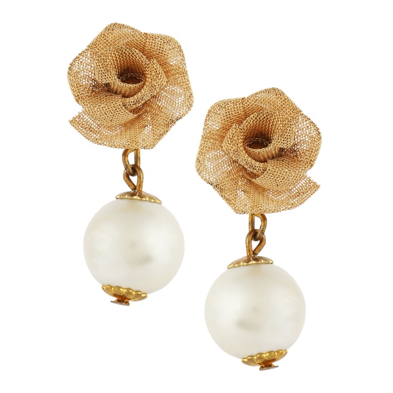 BeAbhika Little Rose Stud Indian Earrings for Women | Elegant Golden Alloy Mesh Design | Nature-Inspired Indian Jewelry For Women with Dangling Pearl