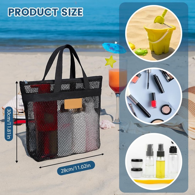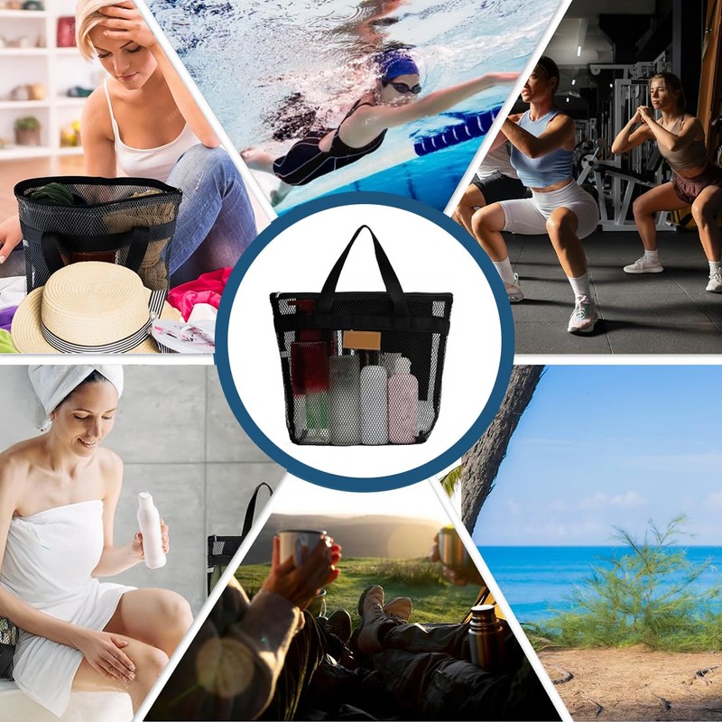 - MULTIPURPOSE Not only as a beach bag, but also as a gym bag and toiletry bag. The visible mesh design makes it easy to find items. You can always have them at hand when travelling or doing sports, which improves your life efficiency.
