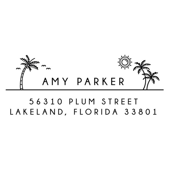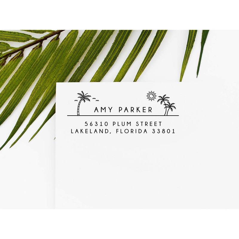 Beach Return Address Self Inking Stamp, Palm Tree Address Stamp, 1 x 2.5 inches