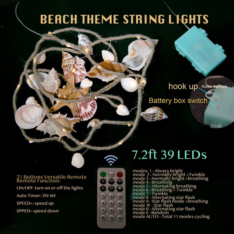 • Coastal Design: Each string features lifelike conch and seashell decorations, evoking the beauty of the ocean and adding a coastal touch to your decor.