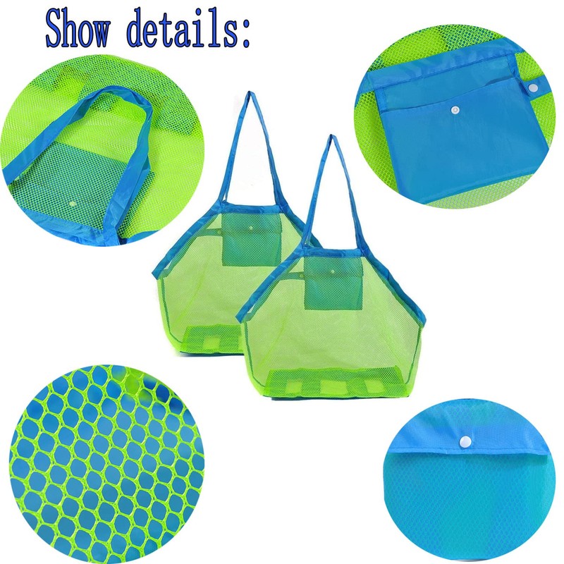 - High capacity: large enough for beach toy bag, our mesh beach bag is large enough to store all kinds of beach toys, e.g. toy bucket, rake, shovel, water pistols, beach towels, bath accessories and so on.