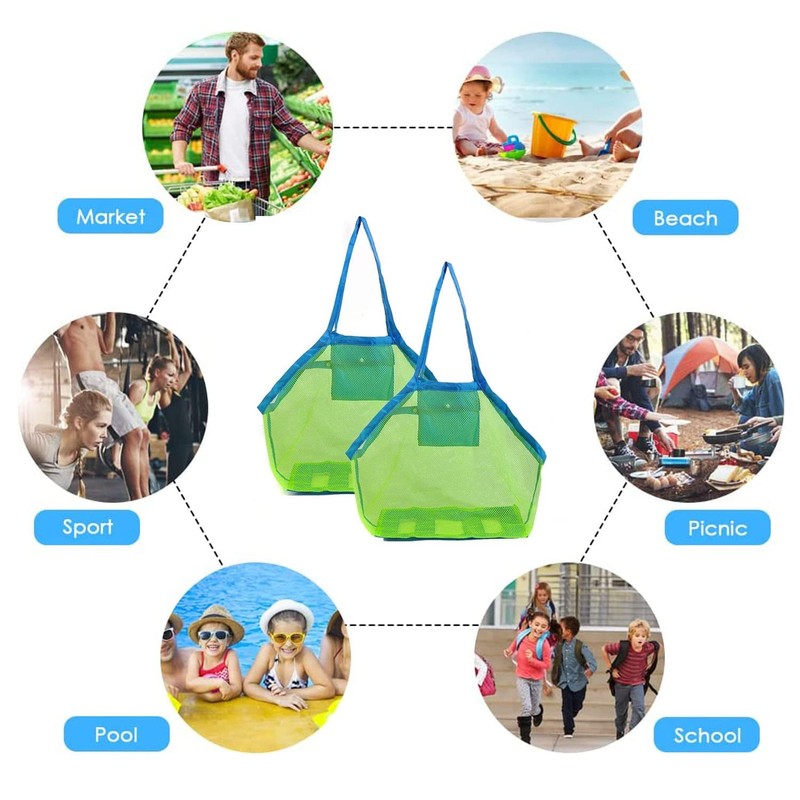 - Application: the beach toy bag is specially designed for the beach, swimming, swimming pool or outdoor gardens. You can use it for shopping, beach or swimming, but also for home, outdoor picnic or other outdoor activities.