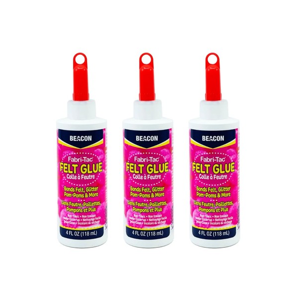 BEACON Felt Glue - Fast Fix for All Felt Projects, Non-Toxic, Dries Clear, Great for Kids, Washer-Friendly, 4-Ounce, 3-Pack