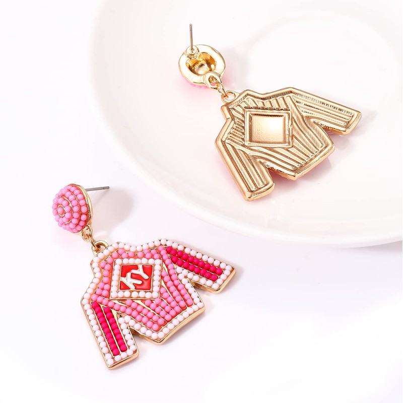 Beaded Earrings Derby Riding Suit Dangle Earrings Kentucky Derby Race Day Earrings Horse Racing Fan Jewelry Horse Racing Accessories (Pink)