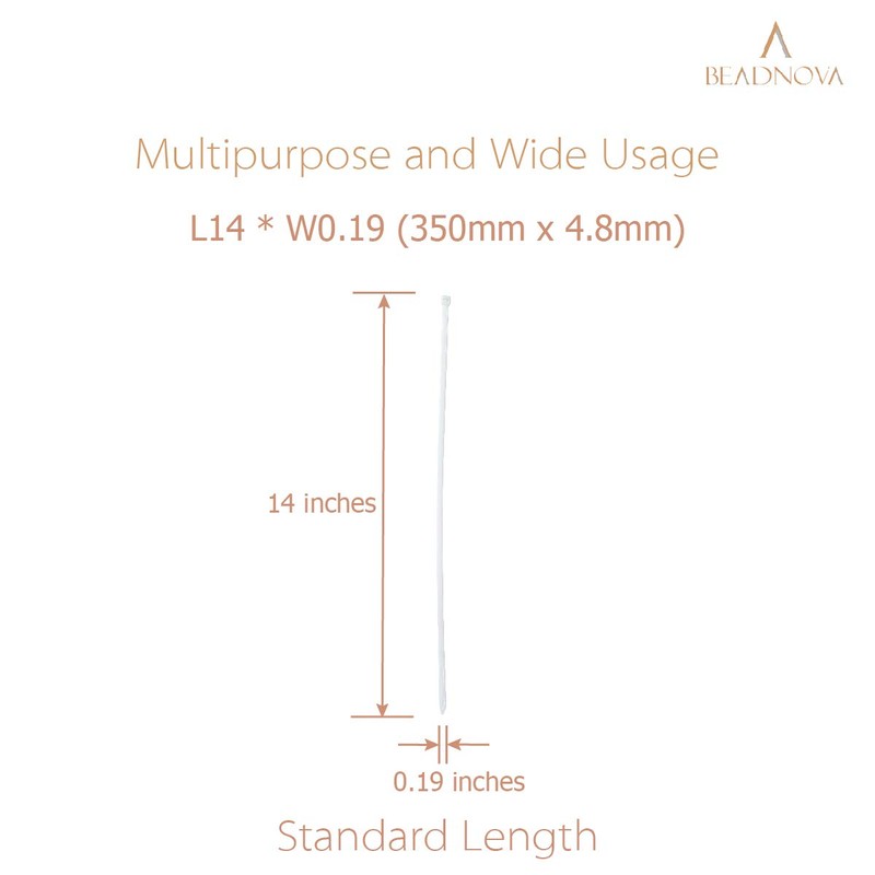 - SIZE AND QUANTITY:100pcs white cable ties, with 14 inches length, 0.18 inches width, 0.051 inches thickness