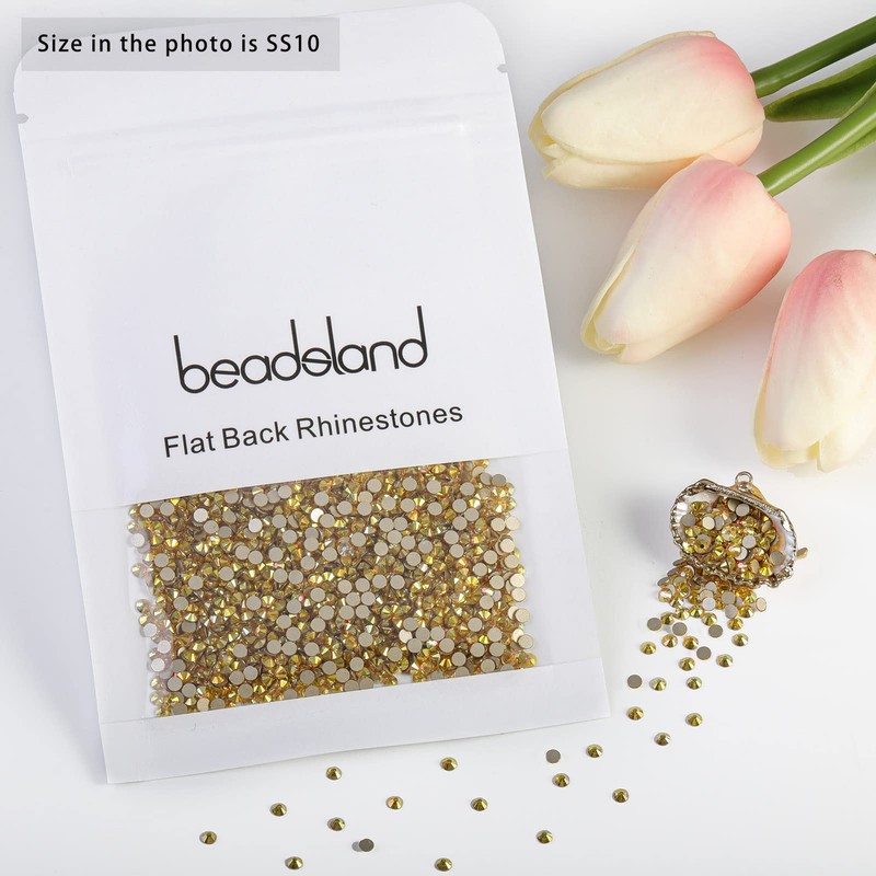 BEADSLAND 1440 pieces flat back rhinestones, nail crystals rhinestones for nails, metal gold, SS10 (2.7-2.8 mm)