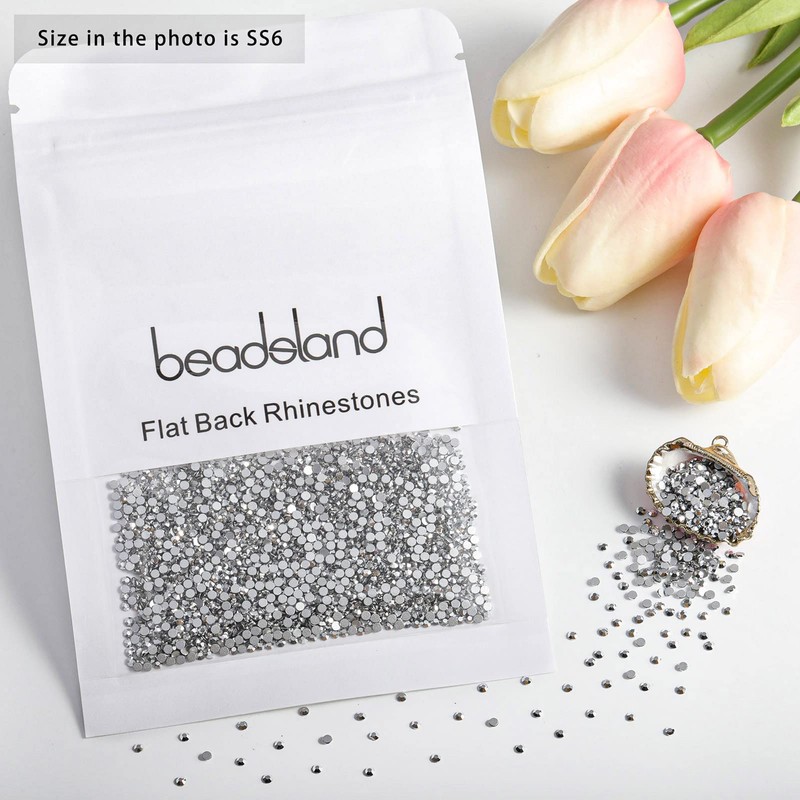 Beadsland 1440 pieces flat back rhinestones, nail crystals rhinestones for nails, silver hematite, SS6 (1.9-2.0 mm)