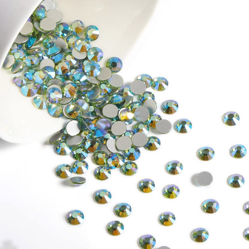 BEADSLAND Beadsland 2880pcs Flat Back Crystal Rhinestones Round Gems for Nail Art and Craft Glue Fix,Peridot AB,SS3,1.2-1.4mm