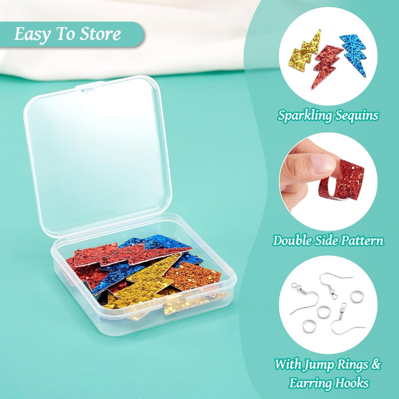 Beadthoven DIY 5 Pairs Faux Leather Lightning Bolt Earring Charms Pendants Mixed Glitter Sequins Lightning Earrings Dangle Earring Making Kits with Earring Hooks Jump Rings for Women Jewelry Making