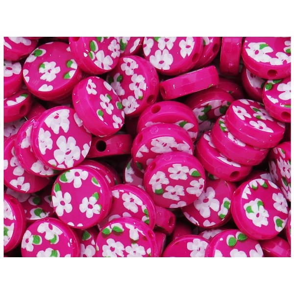 BeadTin Mulberry Opaque w/Flower Print 13mm Coin Plastic Craft Beads (150pcs)