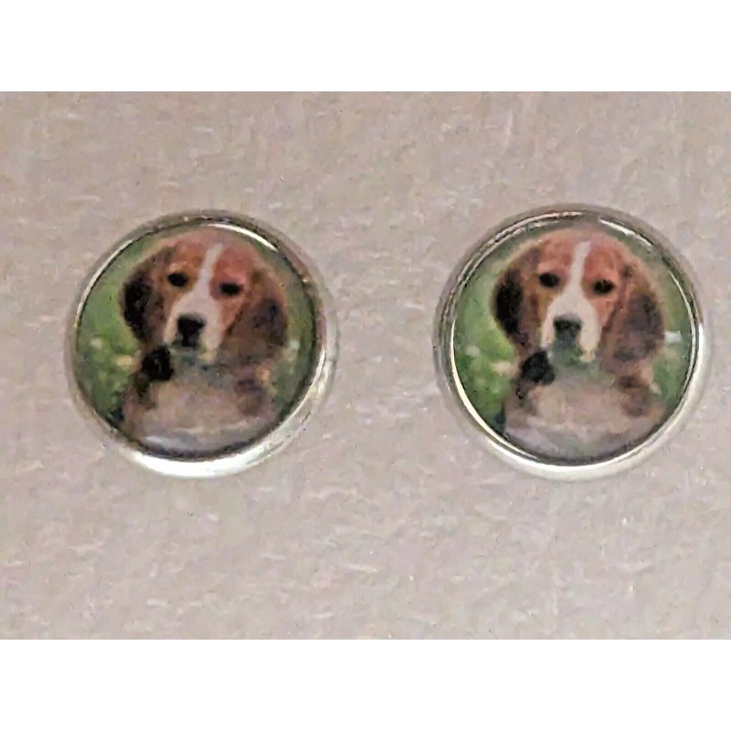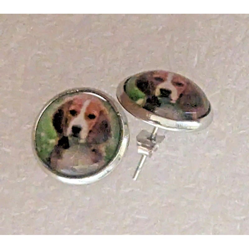 Here are some cute Beagle Dog small round silver alloy earrings