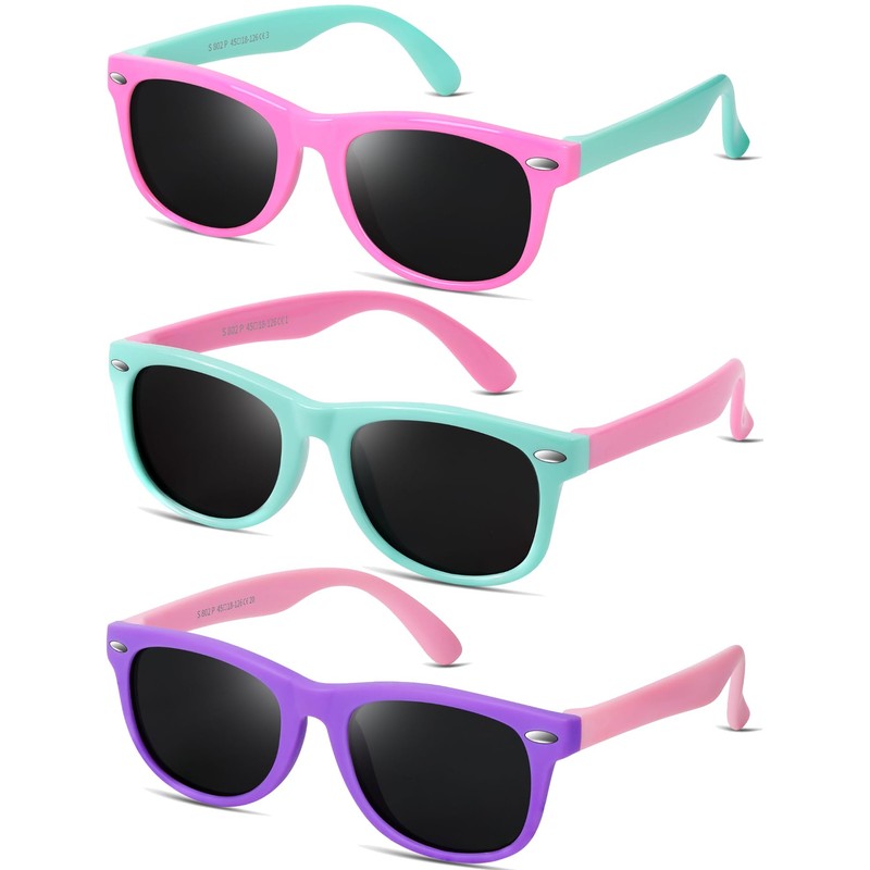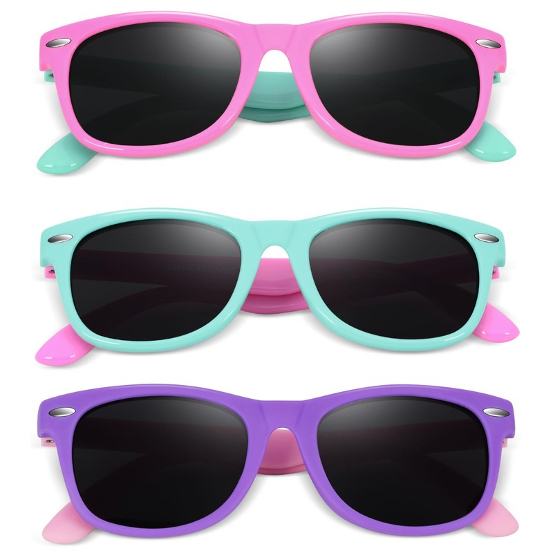 - PACK of 3 - There are 3 pairs of sun glasses available for toddlers, little girls and boys age 3-9. These sunglasses are also the perfect beach essentials for kids.