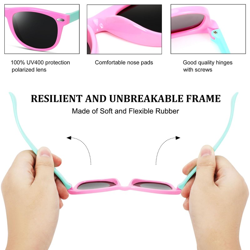 BEALER Kids Polarized Sunglasses for Girls Boys UV Protection Sun Glasses Flexible Rubber TPEE Shades for Children Age 3-9