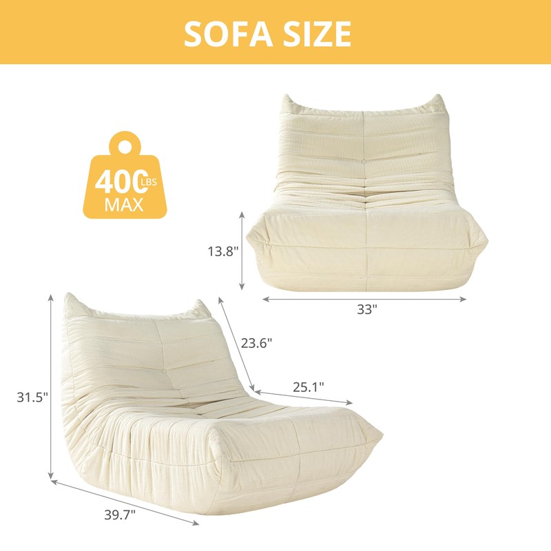 • Modern & Versatile Style: With its caterpillar-inspired design and minimalist armless structure, this sofa complements living rooms, bedrooms, dorms, and offices. Lightweight and portable, it adapts easily to various spaces and uses.