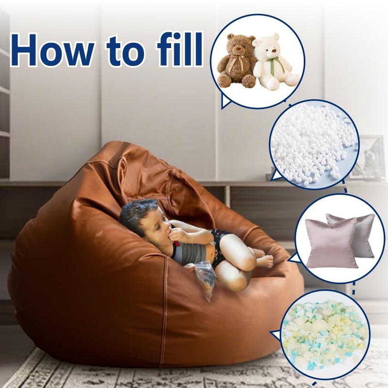 - 【Fabric】Bean bag chair cover(No fillers) is made of high-quality artificial leather, which is soft to the touch, skin-friendly, wear-resistant and breathable, comparable to the texture of genuine leather. Daily cleaning only requires wiping to clean, and it is stain-resistant, wear-resistant and more durable