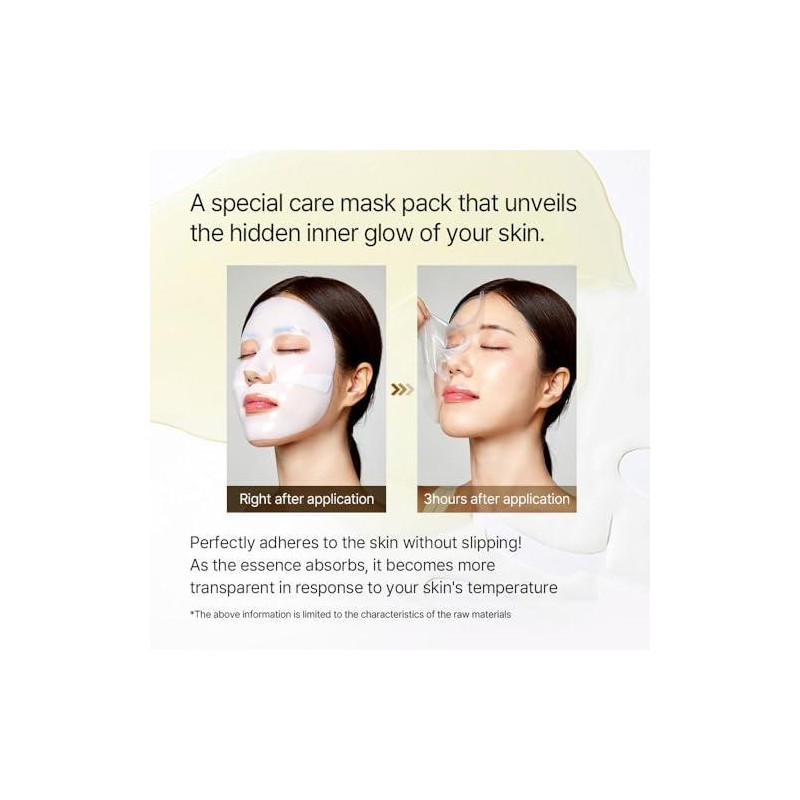 Formulated with plant-based collagen, this essence-rich mask helps restore elasticity, smooth fine lines, and promote a youthful glow. As the 100% concentrated essence is absorbed, the mask gradually transforms into a transparent film, effectively tightening pores and enhancing skin texture. Reveal visibly firmer, more radiant skin in just one use.
