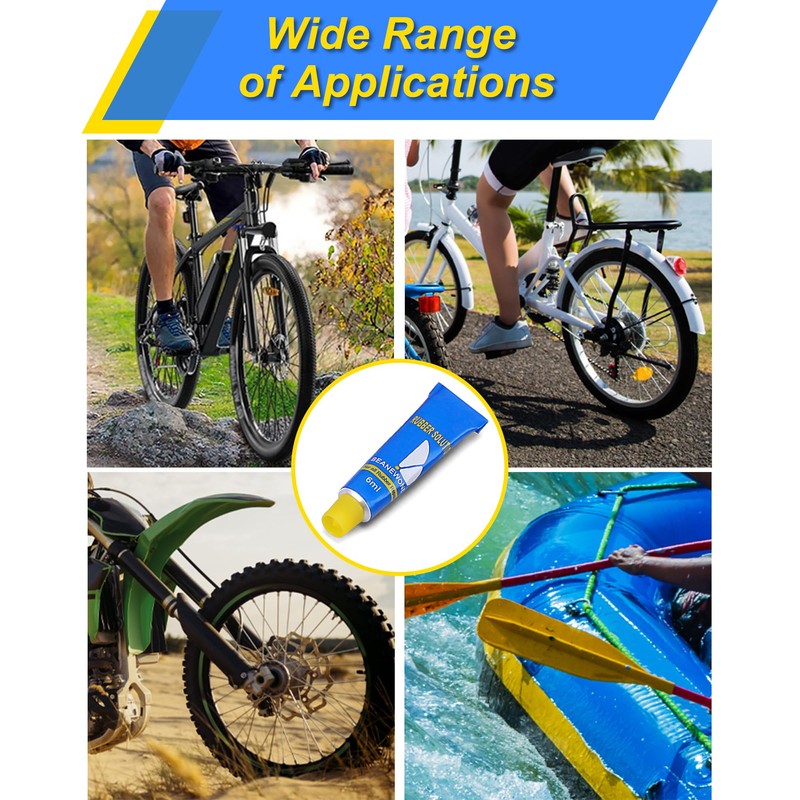 - Wide Range of Applications: The 6ml tube has a compact design with an easy-to-control spout. Whether it's an accidental puncture on a bicycle or motorcycle, or damage to the tires of wheelbarrow or an inflatable kayak, this adhesive can come in handy