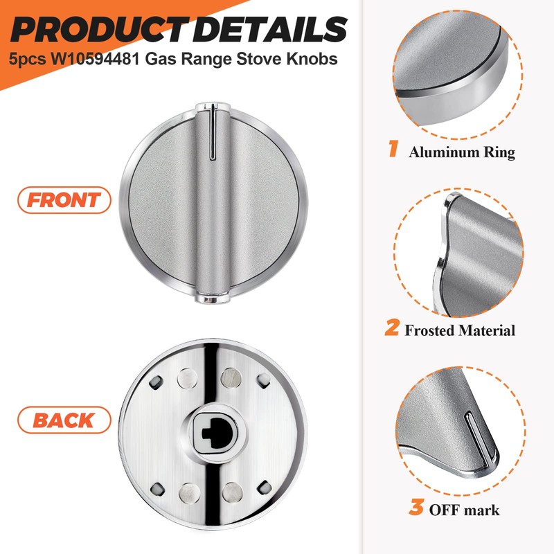 - 365 DAYS GUARANTEE: W10594481 Range Replacement Knobs supports 365 days after-sales service. Our company attaches great importance to the shopping experience of each customer.Risk-free shopping, If you have any quality problem during guarantee period, please contact customer service in time. We will try our best to solve the problem. Customer satisfaction is our tireless pursuit