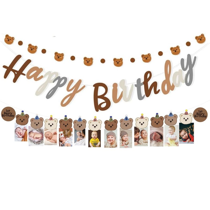 - Bear Theme First Birthday Decorations Party Supplies, Birthday Banner Suitable for Birthday, Party, Anniversary, Baby Shower, Baby Photo Booth Props