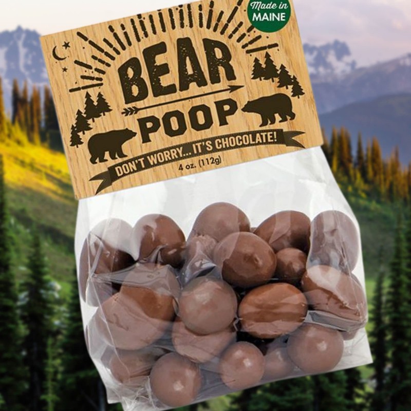 - Bear Poop: don't worry, it's just delicious milk chocolate-covered almonds and blueberries. These treats come in funny packaging, perfect for gift giving and basket filling