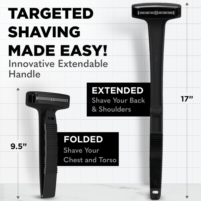 - Never Ask for Help Again - The 17-inch folding handle on our body and back shaver for men and women gives you complete control over your grooming routine, reaching every spot on your body with professional precision - total independence guaranteed