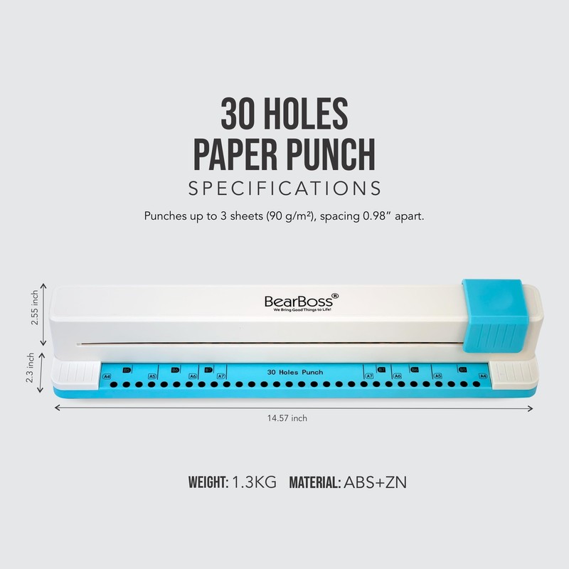 Bearboss 30 Hole Paper Punch, Planner Hole Punch, Adjustable Hole Puncher for Discbound Notebooks & Journaling Supplies