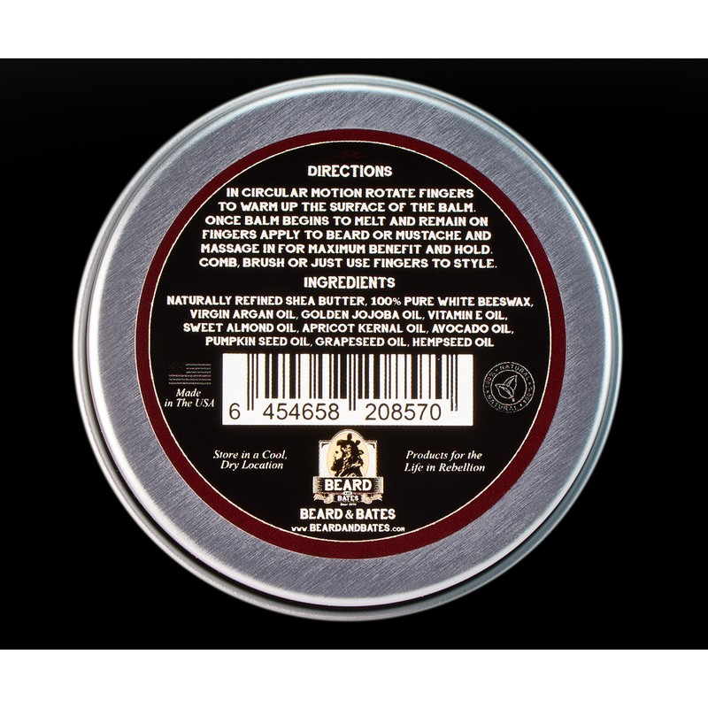 Beard And Bates | 1878 Black Label Beard Balm - Classic Styling Hold | 19th Century Beeswax Formula, Premium Oils | Made in USA