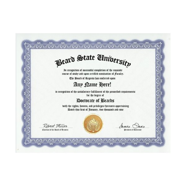 Beard Beards Degree: Custom Gag Diploma Doctorate Certificate (Funny Customized Joke Gift - Novelty Item)