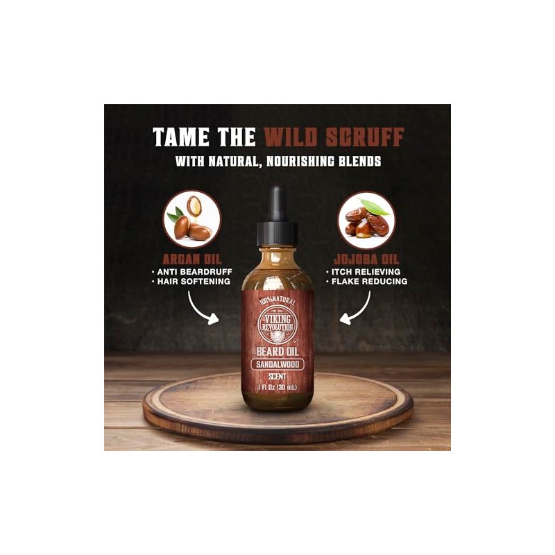 Viking Revolution - Beard Oil Conditioner - All Natural Sandalwood Scent with Organic Argan & Jojoba Oils - Softens & Strengthens Beards and Mustaches for Men (Sandalwood, 1 Pack). 🏆 Reconocido por su excelente relación calidad-precio. Diseño ergonómico y funcionalidad excepcional. 💝 Perfecto como regalo especial. Ideal para quienes buscan lo mejor en calidad y estilo. Producto auténtico con satisfacción total asegurada. ¡No te quedes sin el tuyo y aprovecha esta oportunidad única!