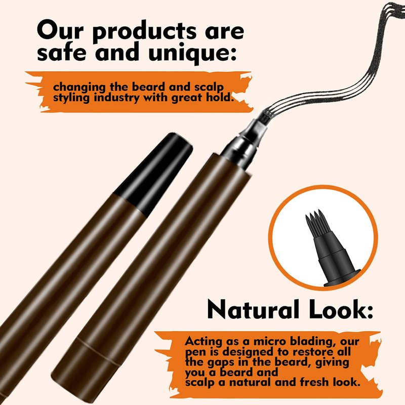 - BEARD COLOURING FOR MEN : The waterproof beard filler pen has four micro-tips, which are slightly bifurcated and bifurcated. This beard filling pen kit can make your beard look more three-dimensional and full, and different parts can be drawn at different angles. The beard styling pencil filler can help you fill in the beard quickly.