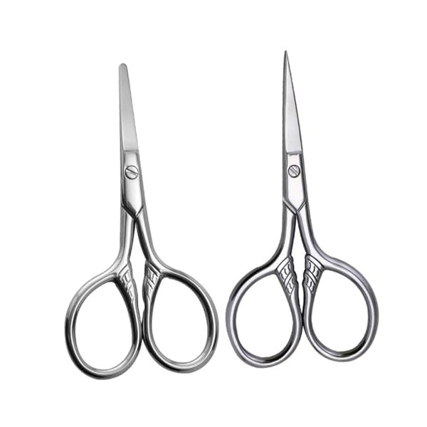 mustache scissors for men This multi-functional grooming scissor is a must-have for anyone looking to keep checking their facial hair.beard trimming scissors The round-tipped scissors are for trimming nose hairs, eyebrows, and beards with precision and ease.nose hair scissors Their compact size makes them for on-the-go use, and their safety design ensures that you won't accidentally hurt skin.wig scissors Made from stainless steel, these scissors are durable and easy to clean