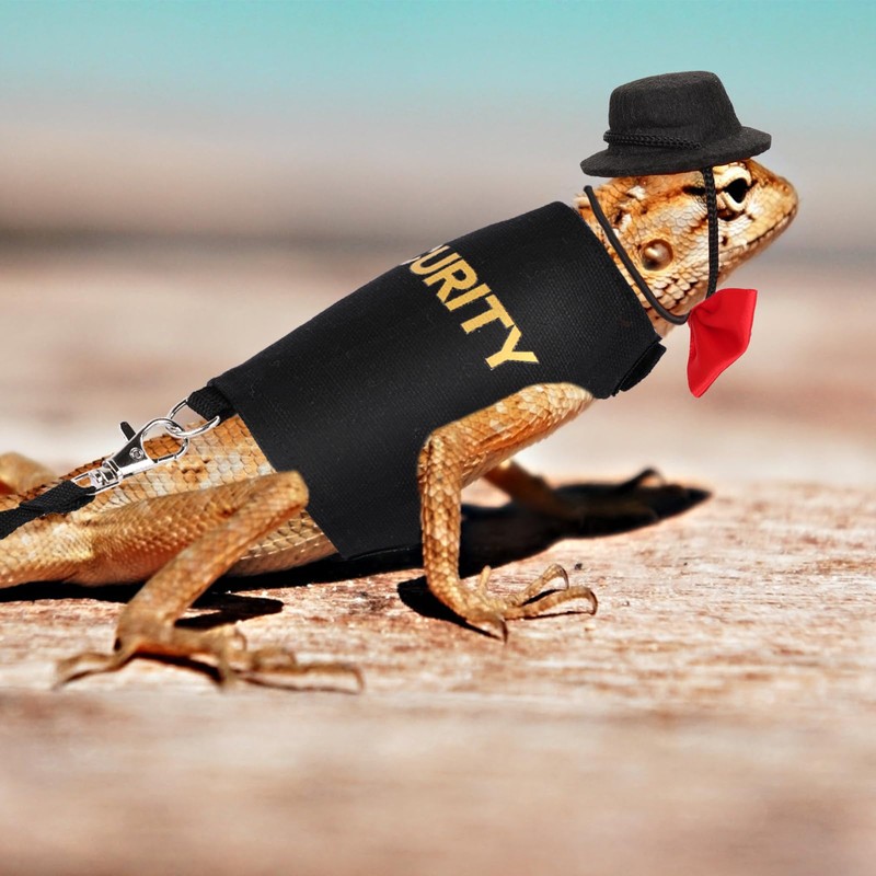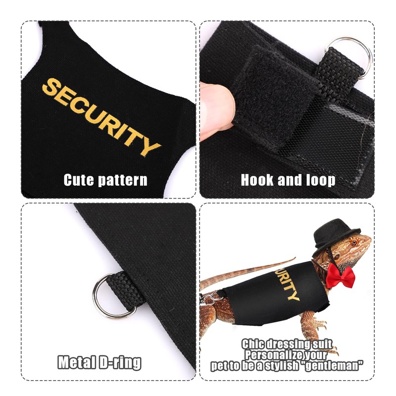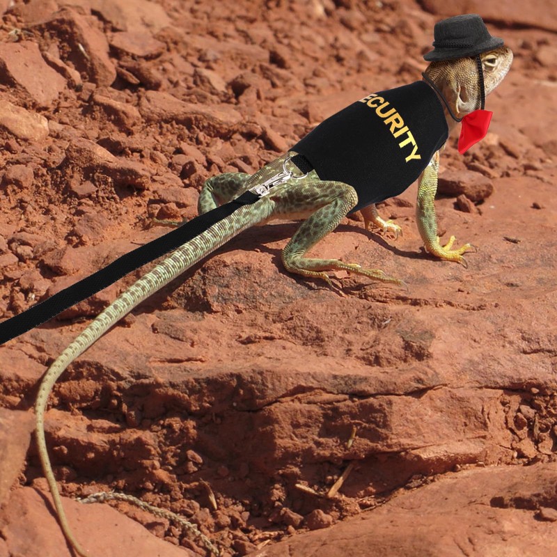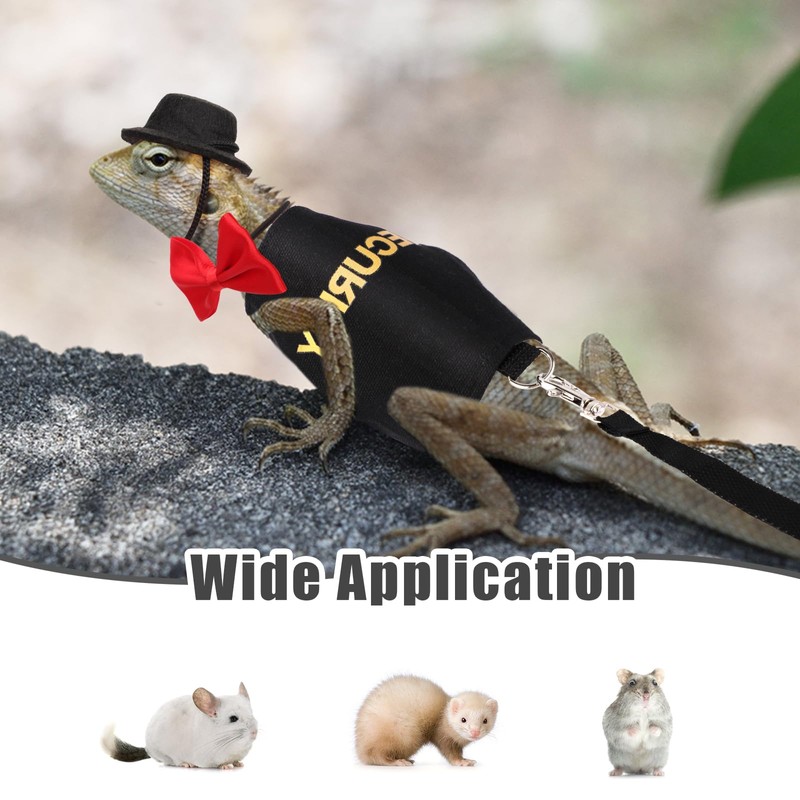 - Easy to Use: Our bearded dragon leash and harness is easy to put on and take off. Simply adjust the straps to the desired size, secure the harness around your pet's body, and attach the leash. Comes with a felt hat and a bow tie, which is a decorative toy for little pet.