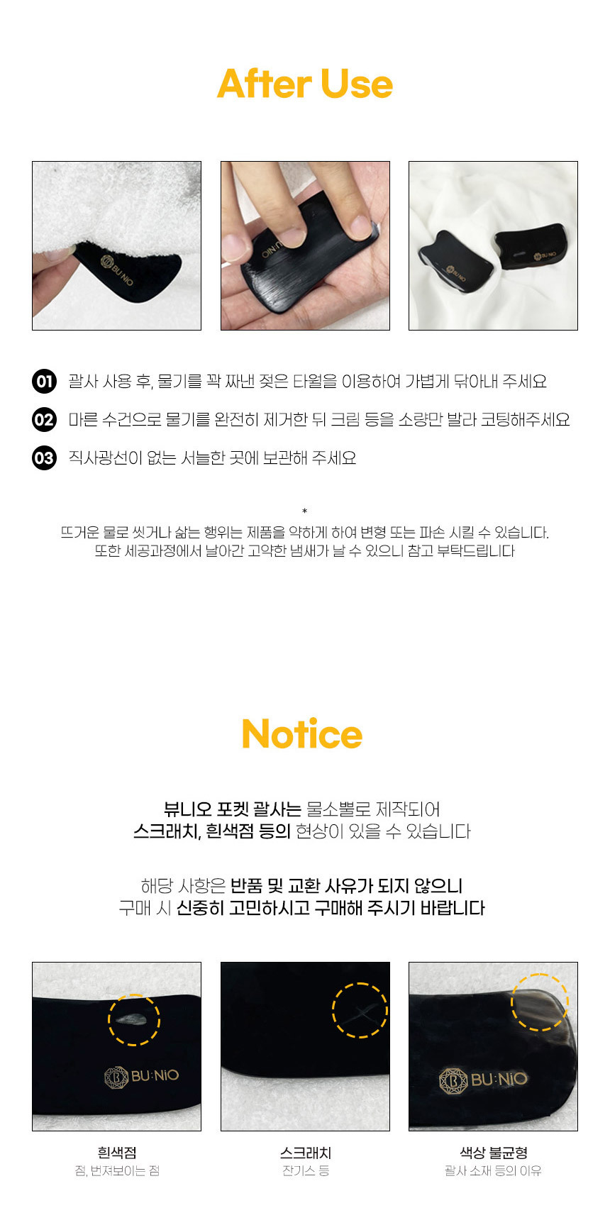 뷰니오 설명서 물소뿔 괄사 포켓 파우치포장 사용