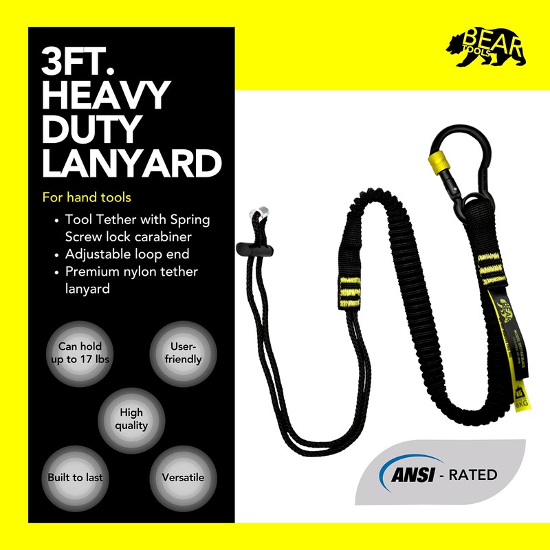 - New Carabiner Design: The BearTOOLS tether lanyard is equipped with a new upgraded design with a high-quality aluminum spring screw lock carabiner that ensures a stronghold and allows you to use your tools safely, without worrying about losing them.