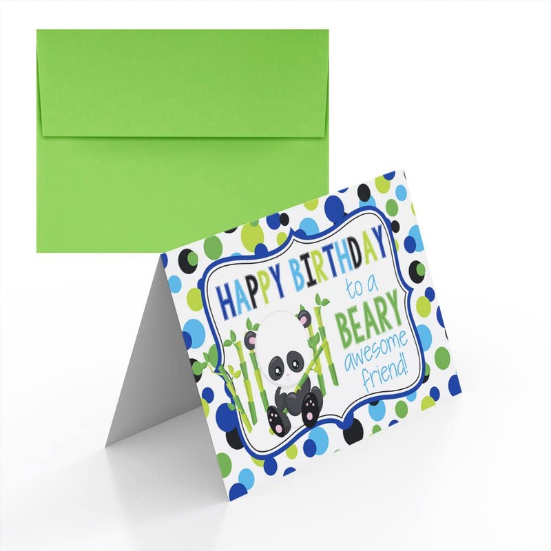 BEARY Awesome Friend Panda Bear Themed Birthday Pun Themed Single All Occasion Blank Birthday Card To Send To Friends & Family, 4"x 6" (when folded) Fill In Greeting