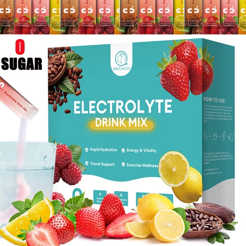 •     PERFECT HYDRATION SET: 16 sticks electrolytes sugar free, total 4 flavors, 4 sticks per 4 flavor including Lemon, Raspberry, Strawberry, Cocoa. Sugar free, gluten free and 0 Calorie, perfect for vegan and fasting. der for hydration and health, with pure natural organic fruits, Sodium,Calcium,Vitamin C,Potassium,Niacin,Vitamin B6,Vitamin B12,Pantothenic Acid,Magnesium,Zinc.
